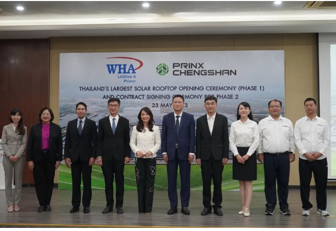 根據會議披露的信息,浦林成山泰國公司已于2022年11月底啟動了一期屋頂太陽能發電項目,該項目的裝機容量為19.44兆瓦。與此同時,根據簽訂的合作協議,二期項目預計將于2024年完成,屆時將覆蓋40000平方米的屋頂區域,總裝機容量將達到24.24兆瓦,而每年的二氧化碳減排量預計可達3萬噸。據了解,這一項目的成功實施將使浦林成山泰國公司的屋頂太陽能發電項目成為泰國乃至整個東南亞地區規模最大的光伏發電項目。