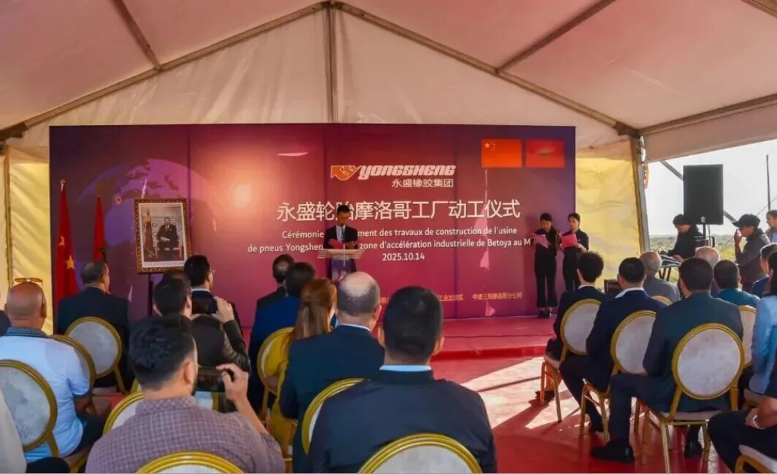 【炭黑產業網】10月21日消息,中國輪胎產業在國際化進程中迎來新的重要節點。10月14日,山東永盛橡膠集團有限公司(下稱“永盛橡膠”)在摩洛哥德里烏什省貝托亞自由區正式啟動海外輪胎項目動工儀式。作為繼森麒麟之后第二家進駐摩洛哥的中國輪胎企業,此舉不僅是永盛橡膠全球化布局的關鍵突破,更直觀展現了中國輪胎企業向全球產能輸出轉型的決心與行動力。