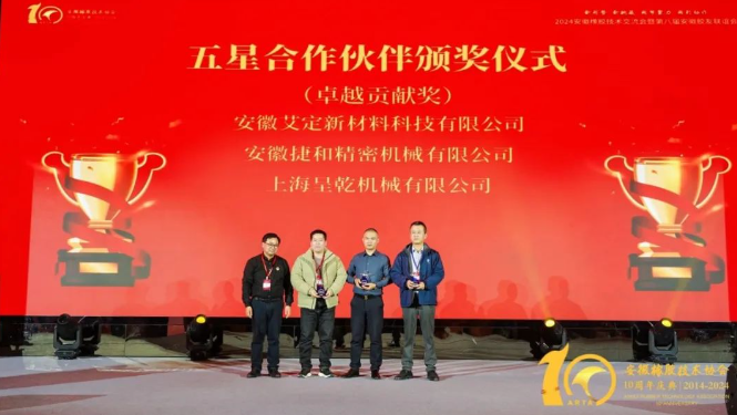 安徽艾定新材料科技有限公司、上海呈乾機械有限公司、安徽捷和精密機械有限公司為代表的16家企業分別獲得五星、四星和三星合作獎,并獲得獎杯。