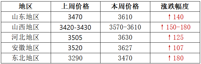 本周,下游客戶備貨熱情高漲,深加工產品市場行情呈現出回升態勢。同時,下游企業原料庫存低位。在多重利好因素的共同作用下,焦企挺價意愿較強,場內主流新單拍賣價格持續上漲,漲幅達100-180元/噸。